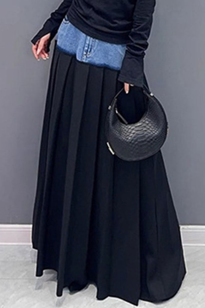 Black Pleated Maxi Skirt
