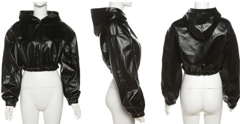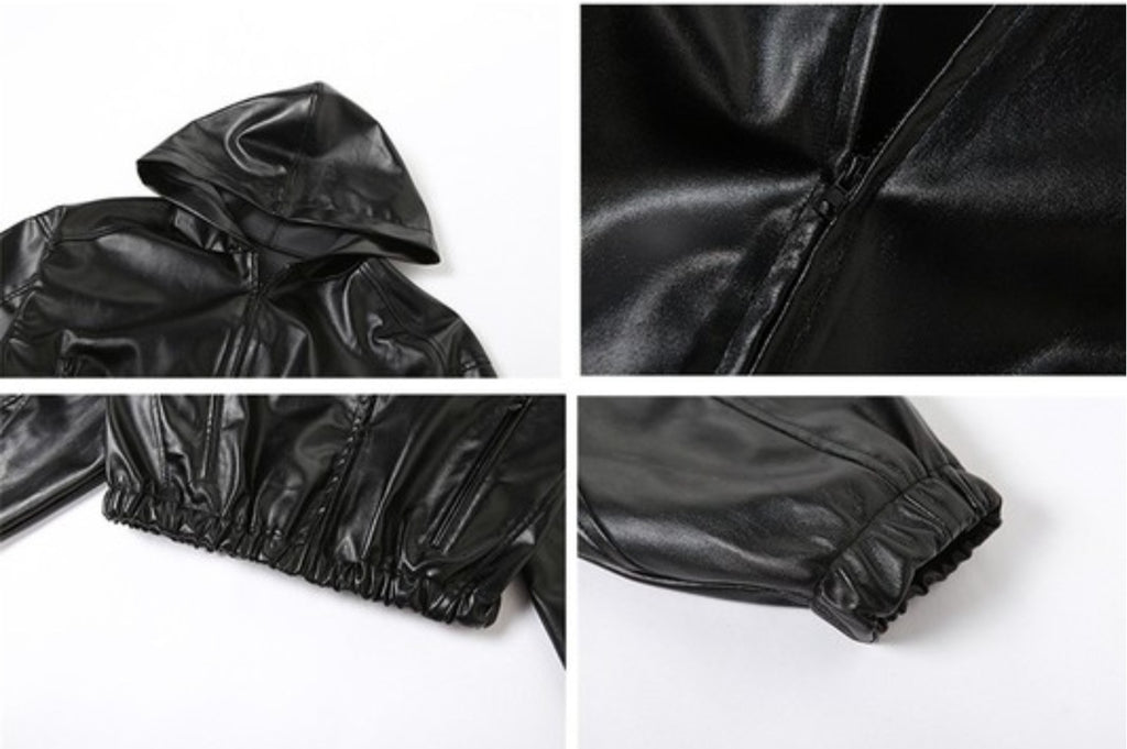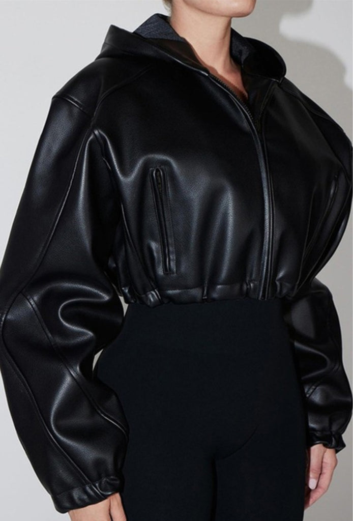 Elevate your street style with this edgy faux leather cropped bomber jacket.